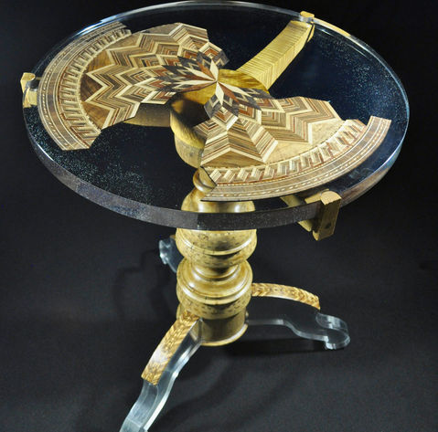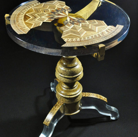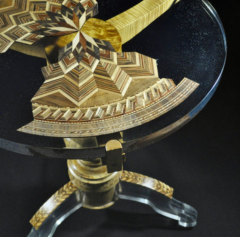 The masterfully crafted epoxy resin combines with antique inlays and noble legs, creating unique pieces of inestimable value.