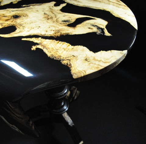 Quest'opera, il nostro tavolino, rappresenta una delle sfide più ardue e prolungate che abbiamo affrontato. Seppur erede spirituale delle nostre "gocce", qui ogni elemento è nuovo, senza traccia del passato. È un inno alla natura, realizzato con radici di quercia che abbiamo personalmente raccolto e stagionato, poi disposte con sapiente armonia. Il tronco stesso è un connubio di radici e resina, frutto di un processo meticoloso e di una lucidatura interamente a mano, un altezza di 90 cm è un omaggio alla sua presenza e al suo valore, una scelta per donargli il palcoscenico che merita.